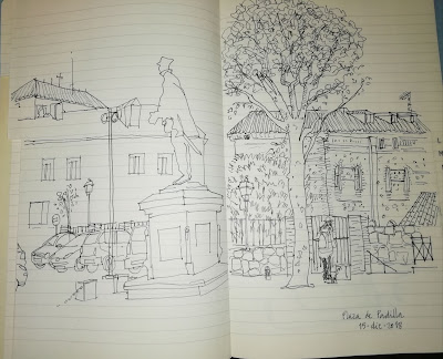 Este sábado en la Plaza de Padilla en un día soleado pero frío. Como casi todos los dibujos últimos está hecho con pluma, esta concretamente es una Monte Rosa de los años 50 que resiste bien el paso del tiempo.